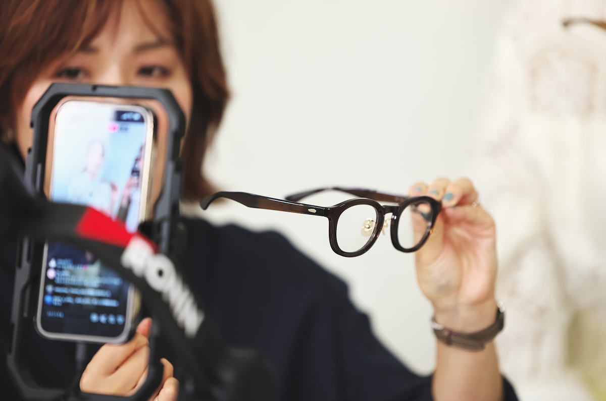 続いては、トレンドのメタルフレームを取り入れた〝Lab-04〟を紹介。かけるだけで今っぽい洒落感が手に入る一本です。このメガネを購入したという視聴者の方からは「アクセみたいで気に入っています」というコメントも。メタルの光沢感で目元が明るく見える同アイテムを、長井さんは「〝ハイライトメガネ〟ですよね」と表現。「メイクをするような感覚でメガネを楽しんでほしい」と伝えます。