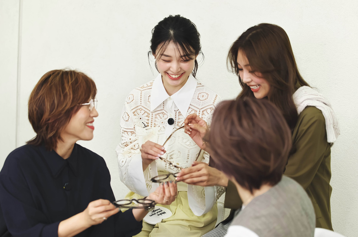 4人でアレコレ試して、「似合う!」「これも素敵!」と大盛り上がりだった今回のインスタライブ。「メガネとサングラスは一本ずつあればいいと思っていたけれど、アクセサリーと同じように、いろいろなものを用意しておきたくなりました!(牛丸さん)」「今までは〝似合う・似合わない〟をなんとなく決めつけていたけれど、試着することで『これも似合うんだ!』と新たな発見ができました(米倉さん)」とオッジェンヌのふたりも大満足だったようです。ぜひ皆さんも眼鏡市場の店頭でコラボメガネとコラボサングラスの魅力に触れてみてくださいね!