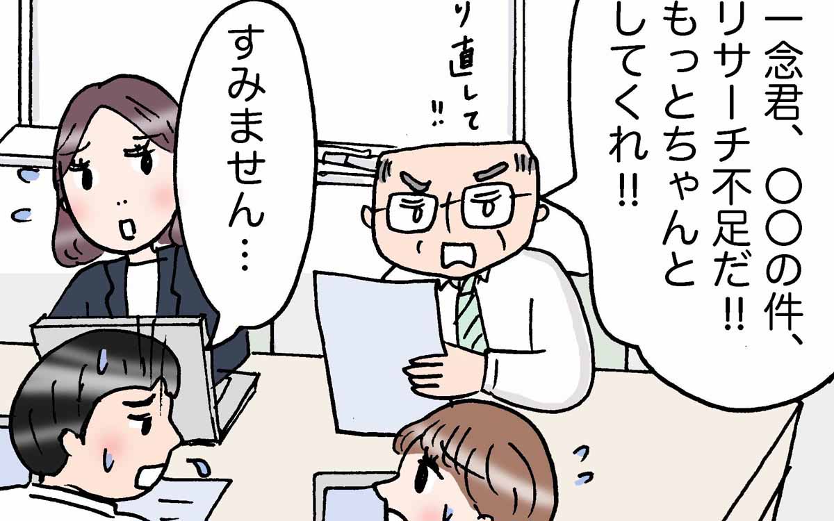 課長からひどく怒られた、一念くん。