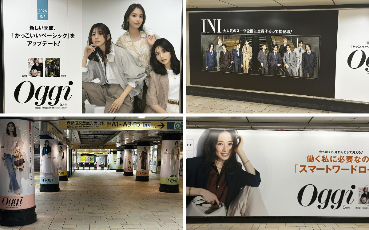 3月30日(月)~4月5日(日)までの1週間、『Oggi』が表参道駅を華やかにジャックします。3月27日発売の『Oggi』5月号から飛び出した本企画。泉 里香、朝比奈 彩、滝沢カレン、古畑星夏、髙橋ひかるの専属モデル5人が全員登場し、『Oggi』ステディブランド16ブランドとともにファッションシーズンの到来を盛り上げます。