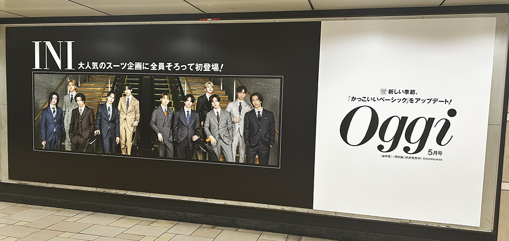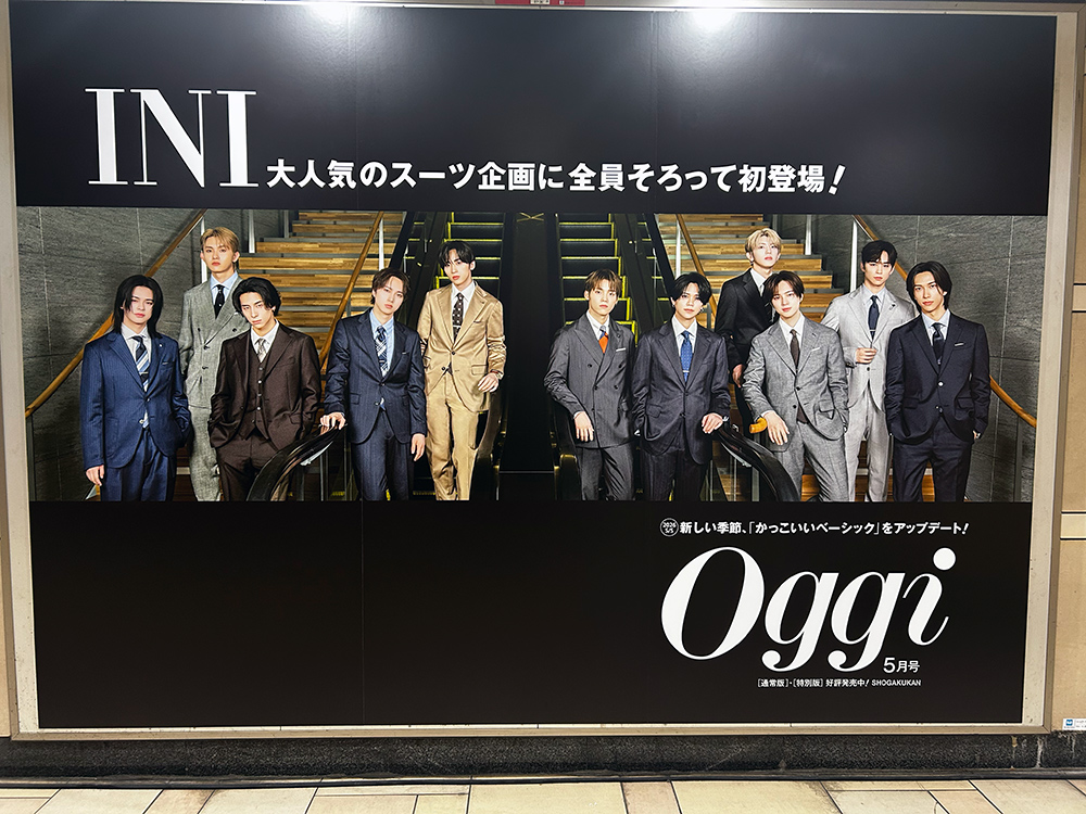 さらに、超人気グローバルボーイズグループ「INI」も登場!表紙を飾る『Oggi』5月号特別版の出版を記念して、超大型ポスターも掲出します。他ではなかなか見られないスーツ姿の11人は圧巻の一言。ぜひチェックしてみてください。