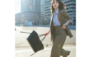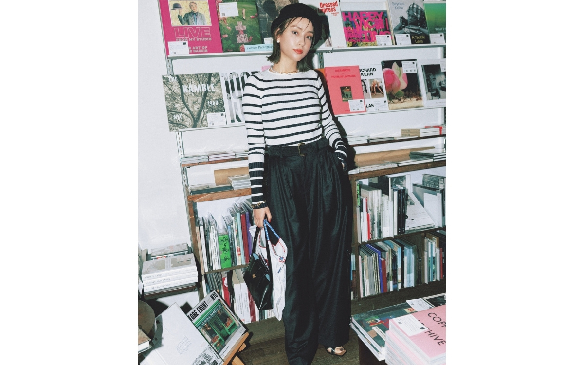 パンツ¥47,300(インターリブ〈サクラ〉) ニット¥25,300(ウメダニット〈ラッピンノット〉) ミニバッグ¥34,100(ルメメ) トートバッグ¥6,050(フィルム〈ダブルスタンダードクロージング〉) 靴¥8,900(チャールズ&キース ジャパン〈CHARLES & KEITH〉) 帽子¥7,700(オーバーライド 神宮前〈オーバーライド〉) ベルト[参考価格]¥30,800(アマン〈アトリエ アンボワーズ〉) ピアス¥13,200・ブレスレット¥15,400(アビステ) ネックレス¥10,120(ZUTTOHOLIC〈プチ・モーメント〉)