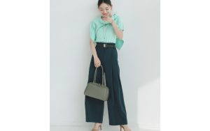 【4/24のコーデ】きれい色ニットが主役♡ タックパンツで通勤仕様に