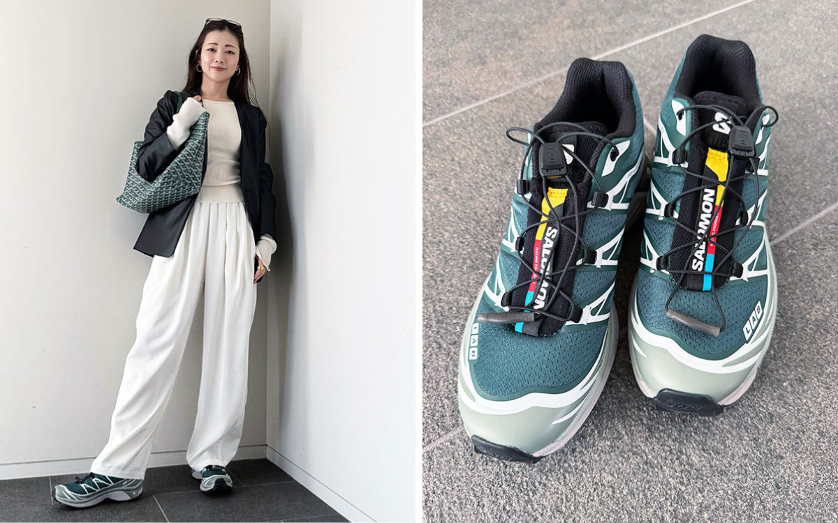 カラーバリエーションはたくさんありましたが、グリーンに一目惚れ。かっこいいのはもちろん、とっても履きやすい! トレイルランニングシューズとしてつくられただけあって、走ったり長時間履いても疲れにくく、ファッション性があってロゴもかわいいんです。モノトーンが多い私のコーデの差し色にもなります。