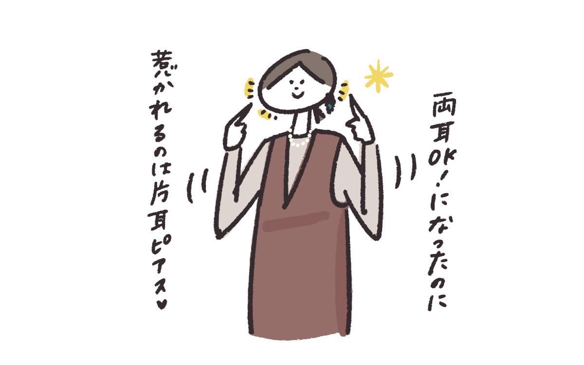 昨年の11月に、左耳のピアスホールを開け直しました。“開け直した”というのは、さらに過去をさかのぼること昨年の春、それまで開いていたピアスホールが炎症してしまい(たぶん仕事の疲れなどが原因)、ずっと左耳だけピアスができずにいたのです。私が初めてピアスをしたのは高校生のときなので、もうずーーーーーっと前!にもかかわらず、今になってまさか炎症を起こすとは……。これまでも、体調がすぐれないときにカブれるようなことが、なくもなかったのですが(しかも不思議なことにいつも左耳)、今回は症状がひどく、しばらくピアスをするのをやめていたら、とうとう穴がふさがってしまいました。人間の治癒力ってすごい、何十年も前のピアスホールすら、なかったことにしようとするのですから。