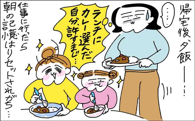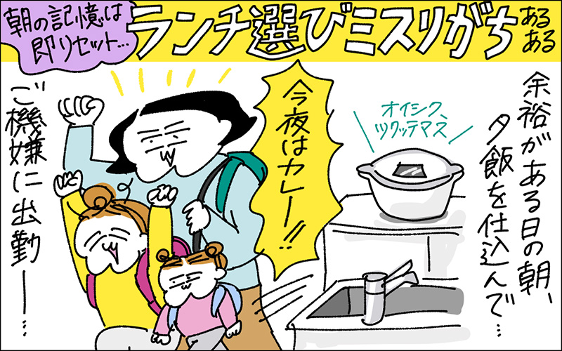 働くママなら誰もが一度は経験したことのある、思わず「わかる~!」と叫びたくなるようなエピソード= 「#ワーママあるある」。自身も2児の母であるイラストレーター・カミナカケロヨンさんがリアルなエピソードを4コマ漫画にしてお届け!今回はランチと晩御飯事情について。