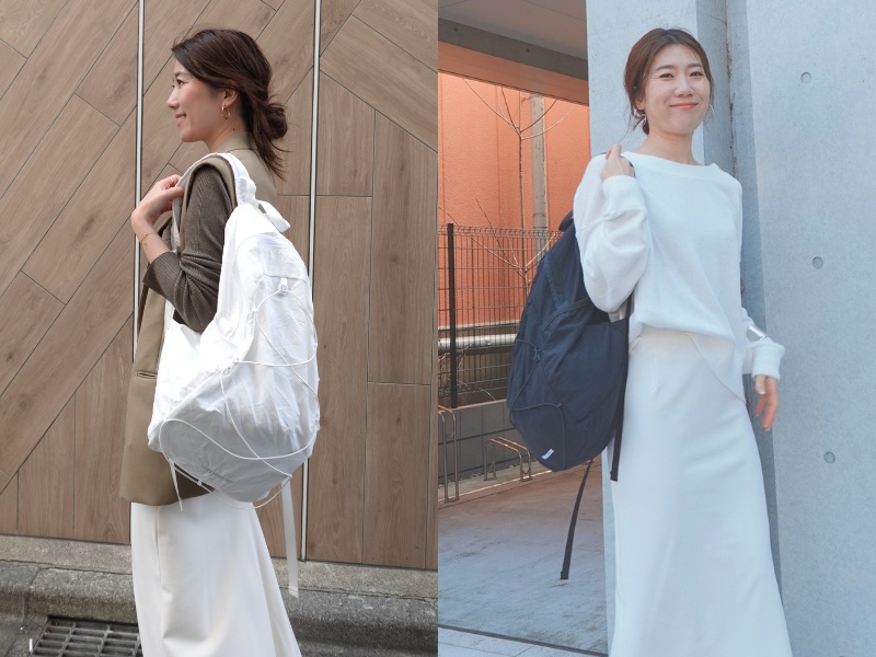 白リュック=コーデのトーンアップ&つなぎ役、黒リュック=引き締め役