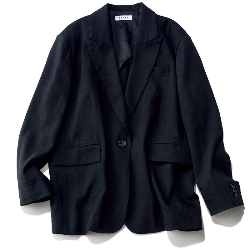 今っぽジャケットなら、おしゃれな人がこぞって注目するブランド、HER.から選ぶのも手。上質なリネン100%ならではの肉感と質感、ボクシーなシルエット、オーセンティックなダブルブレストが、安定感と信頼感を生む。