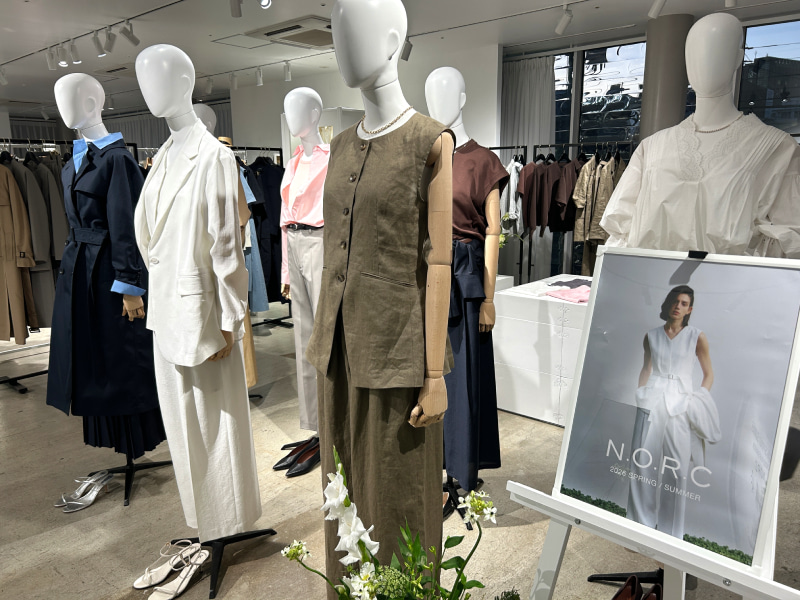 先日「N.O.R.C(ノーク)」の2026年春夏展示会へ行く機会がありました。オフィスに着て行ける、洗える、着回せるアイテムを発見したのでご紹介します!