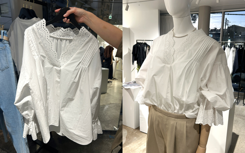 ▲カットワーク刺繍ボリュームスリーブブラウス