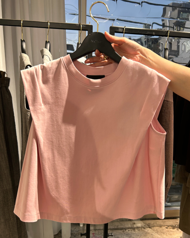 きれい見えを叶えてくれる、夏の優秀トップスも発見♡ 肩のタックの立体感がポイント。体のラインを拾いすぎないシルエットが嬉しいです。ピンクの他にホワイトやブラック、チャコール、チョコレートブラウンなどカラー展開が豊富でした。こちらのトップスのすごいところが、UVカット、接触冷感、汗染み防止という機能性を兼ね備えていて暑い夏にぴったり!
