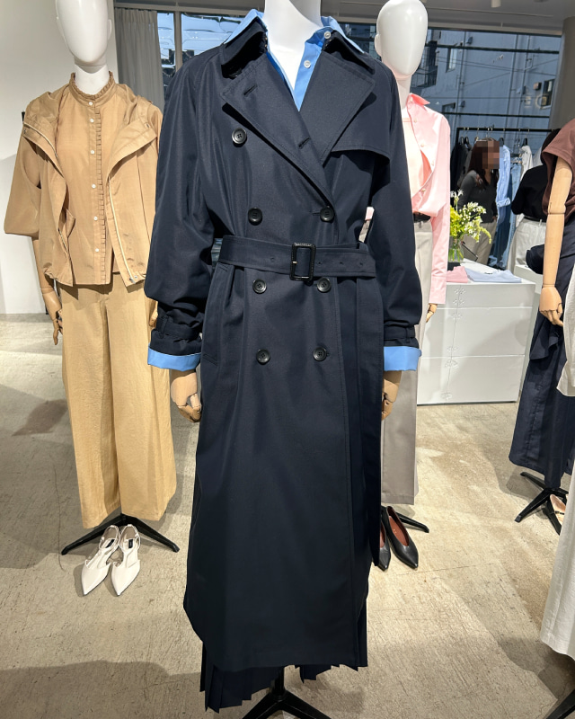 羽織るだけできちんと見える、美しいシルエットのロングトレンチコート。オーバーすぎない絶妙なゆとりのシルエットが今っぽくて素敵。通勤も休日も使える、ネイビーとベージュのカラー展開。シワになりにくい素材感と、花粉がつきにくい特殊コーティングがしてあるそうで、機能面も◎。働く女性が求めていたトレンチコートという気がしてすごいなと思いました。
