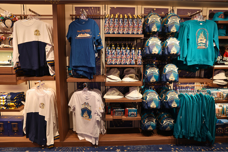 船内のメインショップ「ワールド・オブ・ディズニー」は初日の21時にオープンしました。就航当初は初日のみ予約制だったそうですが、今回は予約不要で入店できました。日本では売っていないミニリュック「ラウンジフライ」の一部商品は初日で売り切れてまっていたので、買い物が楽しみの方はぜひ初日夜から足を運びましょう。アドベンチャー号の限定商品は比較的在庫豊富で、希望の商品やサイズがない場合、リストックされるとアプリのメッセージで通知が来るサービスもあります(レジスタッフにお願いすればOK)。