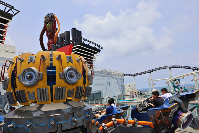 ▲テーマエリア「マーベル・ランディング」のアトラクション、「グルート・ギャラクシー・スピン」。屋外で遊ぶときはしっかり暑さと日差し対策を!