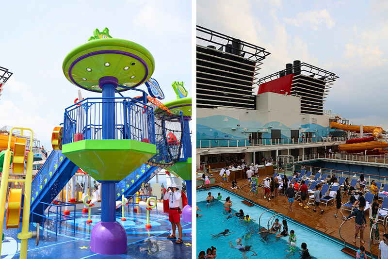▲17階デッキにあるウォータープレイエリア「トイ・ストーリー・プレイス」。前述したとおり、乗船直後か比較的涼しくて空いている朝一番が狙い目です。