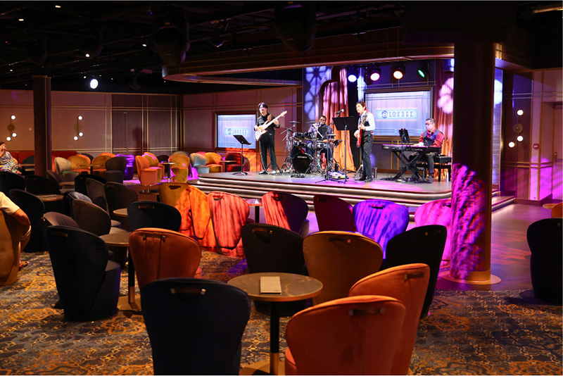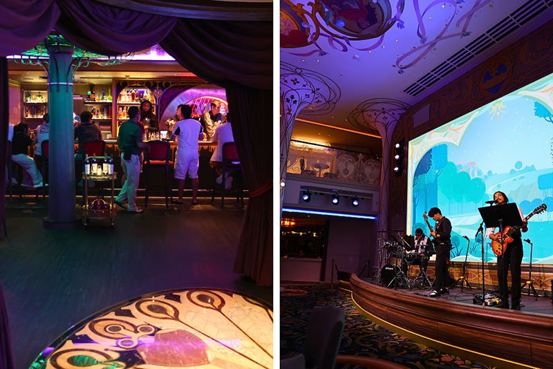 ▲6階タウンスクエアのステージ(右)と、そのすぐ横にあるバー「スペルバウンド」。カクテルやモクテル片手に、生演奏を楽しみましょう!