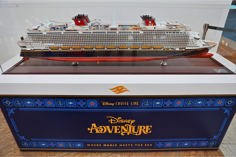 ▲マリーナ・ベイ・クルーズ・センターに展示されていたアドベンチャー号の模型。海に浮かぶテーマパークのようです!