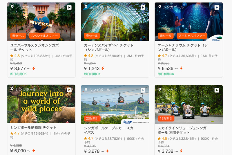 ▲Klookではシンガポールの主要観光施設のチケットを多く取り扱っており、現地窓口で買うよりお得に購入できることもあるので要チェック!