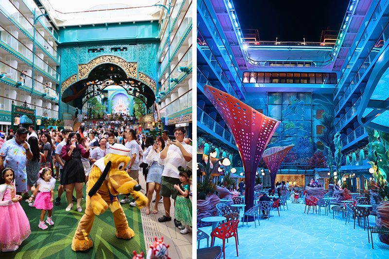▲ディズニー・イマジネーション・ガーデン(左)やディズニー・ディスカバリー・リーフ(右)など、テーマエリアに面した客室もあります。