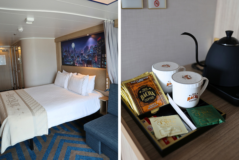 私たちは4泊クルーズを選び、海側バルコニー付きの客室(カテゴリー6D)に滞在しました。泊数に関して言えば、3泊と4泊で船上のイベント内容に大きな差はありませんが(「ミッキーのカラー・スピン・ダンス・パーティ」が4泊のみ開催)、できることならゆとりある4泊がおすすめです。