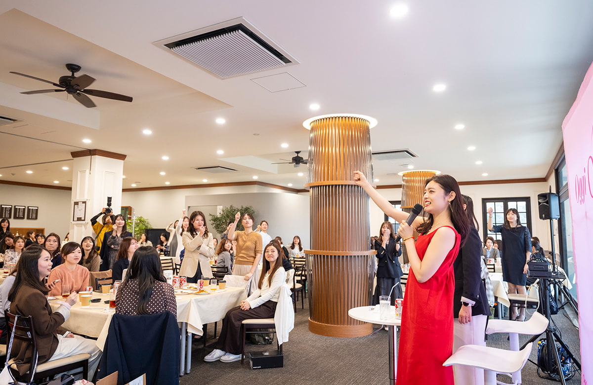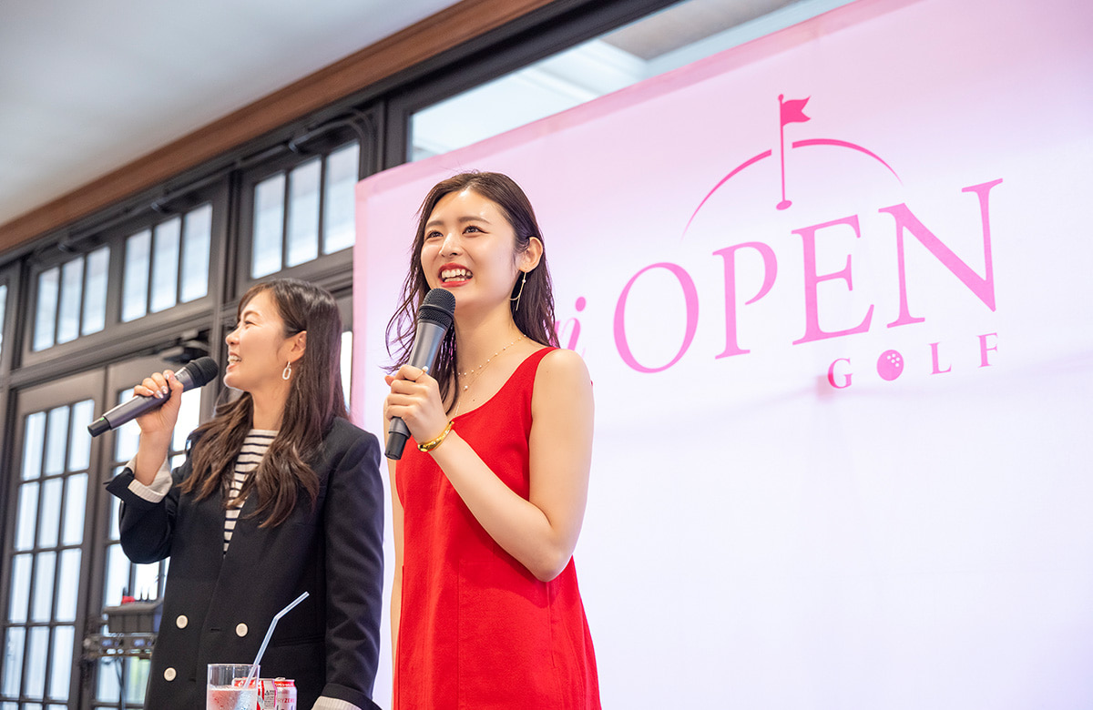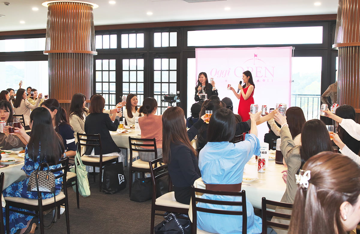 参加者127人がラウンドを終えた後は、クラブハウス2階レストランで表彰式&アフターパーティが行われました。Oggi専属モデルの古畑星夏ちゃんもパーティ仕様に衣装チェンジ。