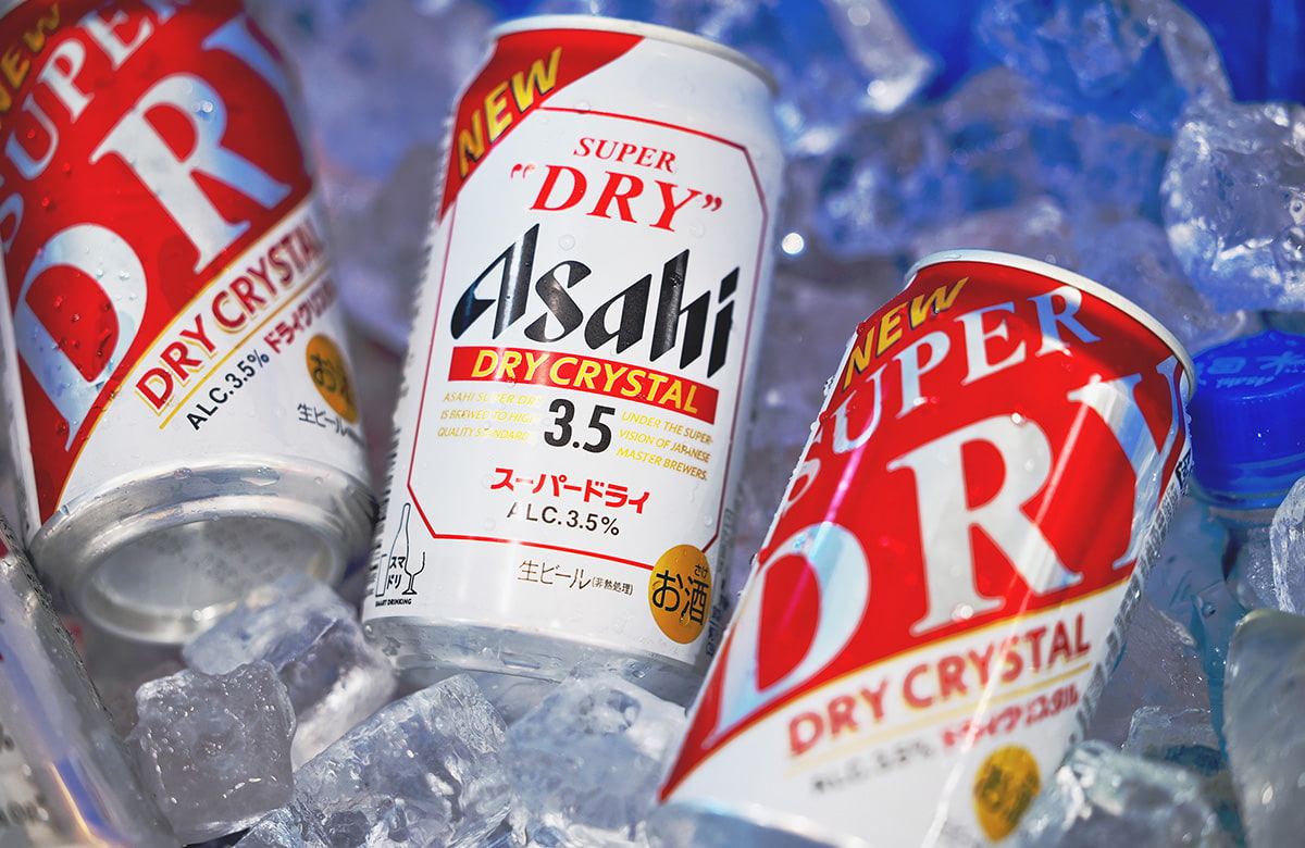 乾杯のビールはアルコール3.5%ながら、スーパードライらしいキレと本格的なビールの味わいが楽しめる「アサヒスーパードライ ドライクリスタル」。