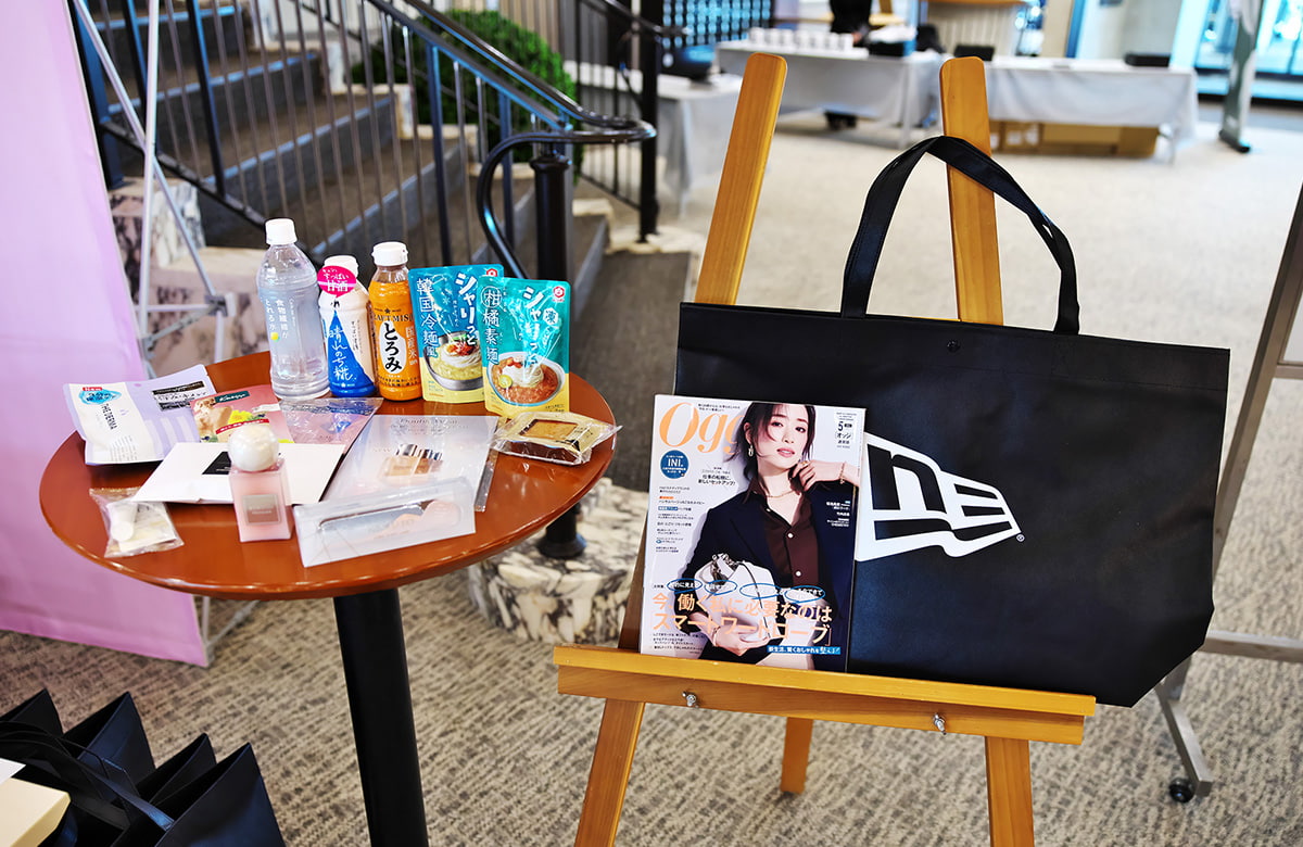 ▲朝、チェックインと同時に手渡される参加賞。その重さとショッパーの可愛さにダブルで驚く人続出