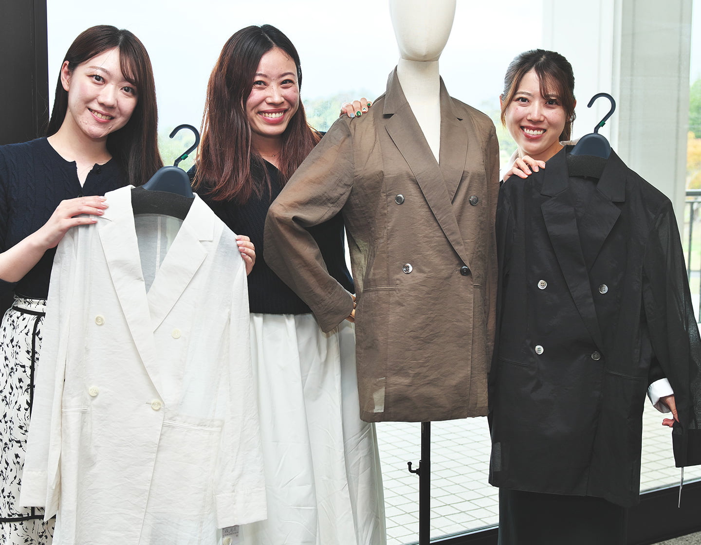 Oggi5月号でモデルの朝比奈彩さんが着用&夏通勤に活躍間違いなしのナイロンコットンシアーボイルダブルジャケットのブラウン、ブラック、ベージュを。