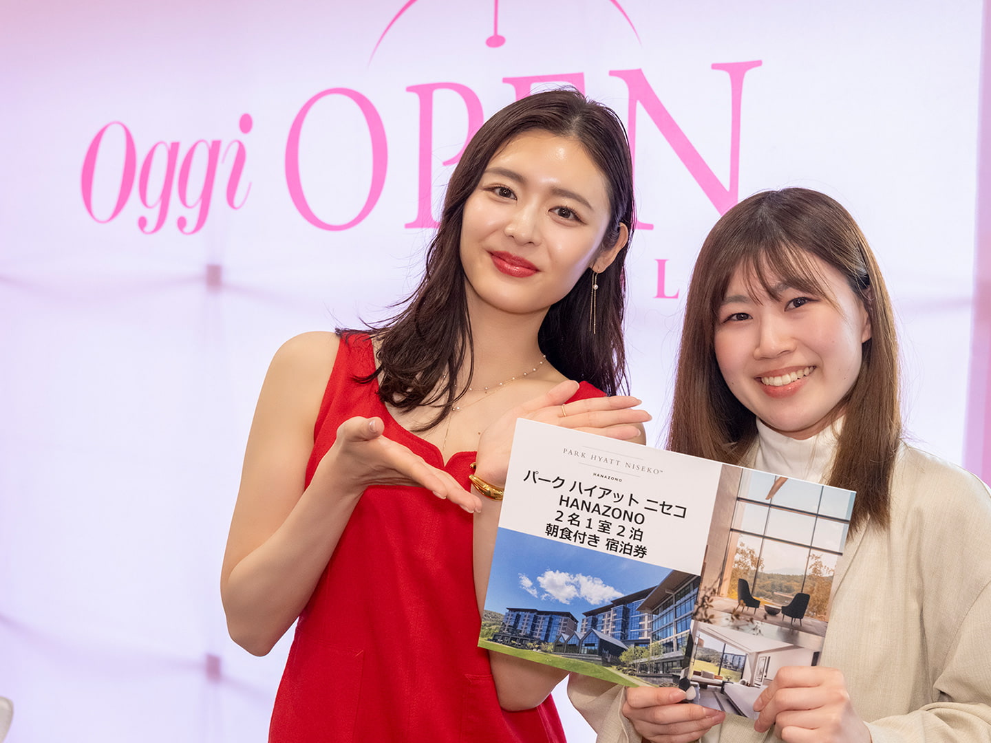 まだまだ続きます! Oggiが28日発売であることにちなみ、28位の方に贈られるOggi賞。今回は北海道の南西部、ニセコアンヌプリ山と羊蹄山の大自然に抱かれた「パーク ハイアットニセコ HANAZONO」の2泊朝食付きペア宿泊券が贈られました。
