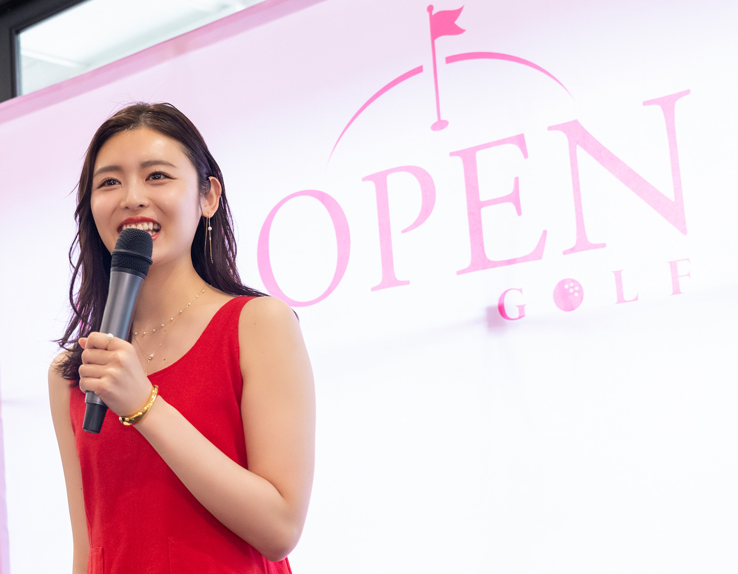 ラウンド時のウェアとはガラリと雰囲気を変え、レディなワンピースを纏って登場するや、「かわいい!」「きれい…」とその美しさに、会場からは羨望のため息が。