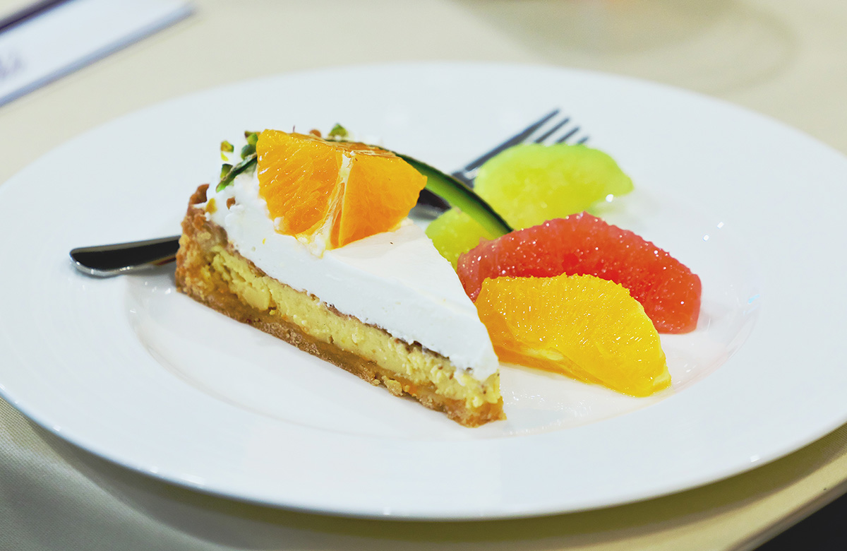 ▲アフターパーティのデザートで供されたのは「カフェコムサ」が今回のOggi OPENのために考案した清見オレンジのベイクドチーズケーキ。これが大好評でした♡