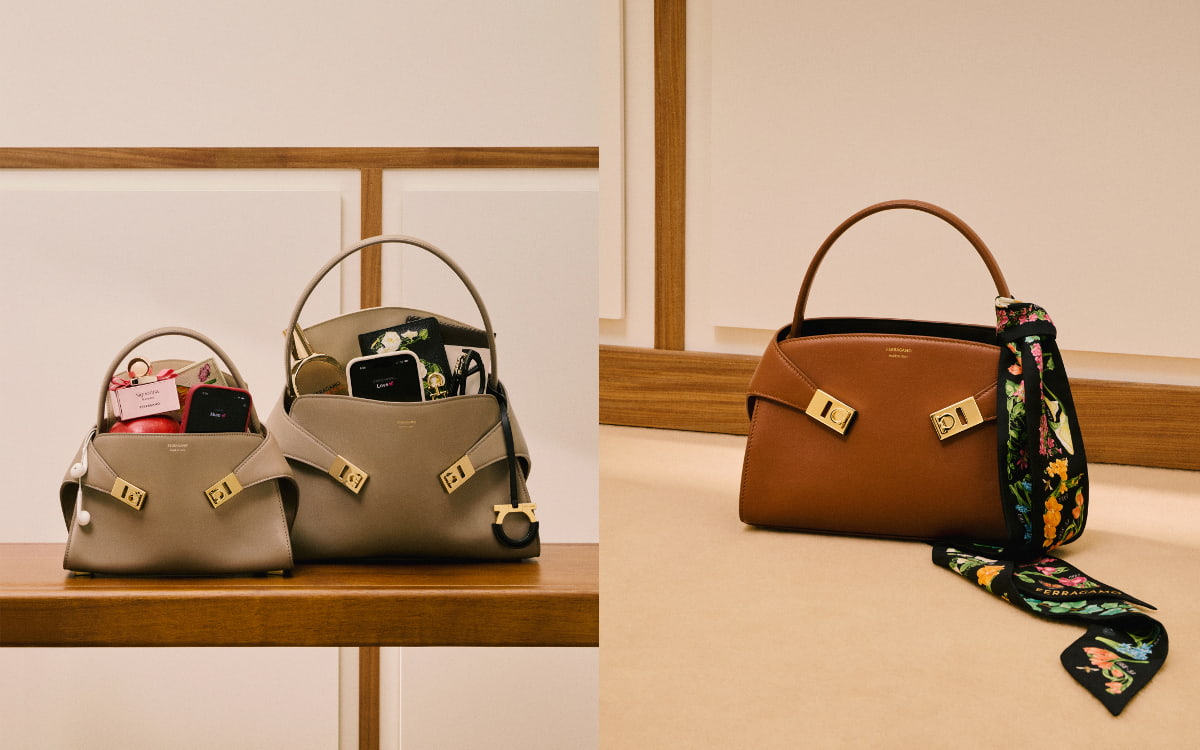 シルクスカーフとバンドゥのスペシャルセレクションには、象徴的なプリントとフラワーモチーフというブランドの伝統を反映。花々や葉、花びら、そしてフェラガモのアーカイブに残るアイコニックなシューズデザインを描いています。