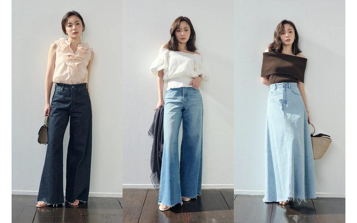 シックに着られるダークインディゴのフレアデニム