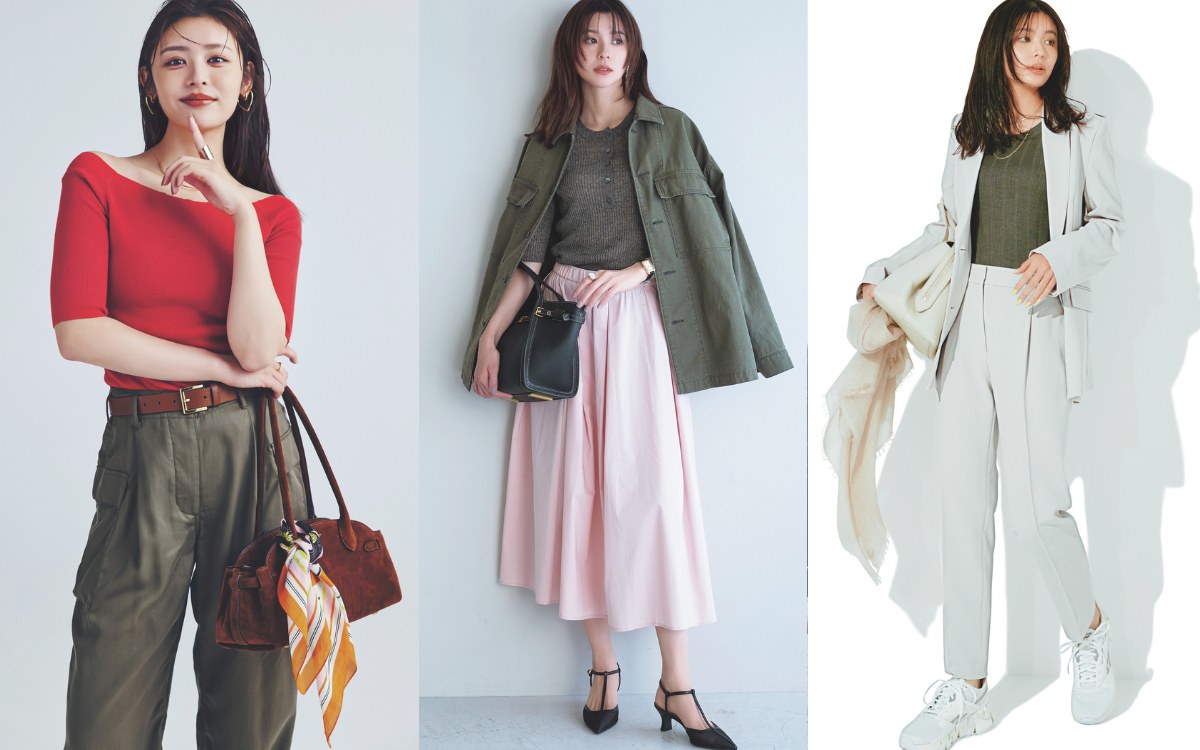 黒と合わせるとモードに、白と合わせるとこなれた印象に。合わせる色ごとにさまざまな表情を見せてくれるカーキトップス。ここでは、今大人女性におすすめのお手本コーデを見ていきましょう。