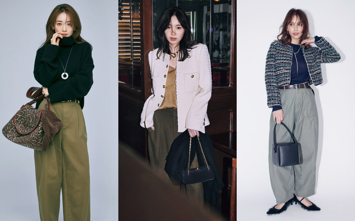 トレンドアイテムを着こなすなら、美人ボトムやブラウスの定番ステディ名品で。