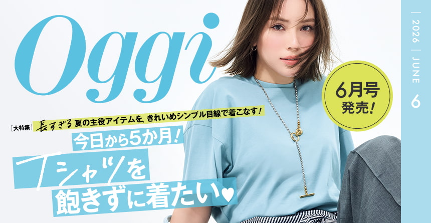 2026年4月28日(火)発売のOggi6月号。大特集の『今日から5か月!「Tシャツ」を飽きずに着たい♡』では、Tシャツ…