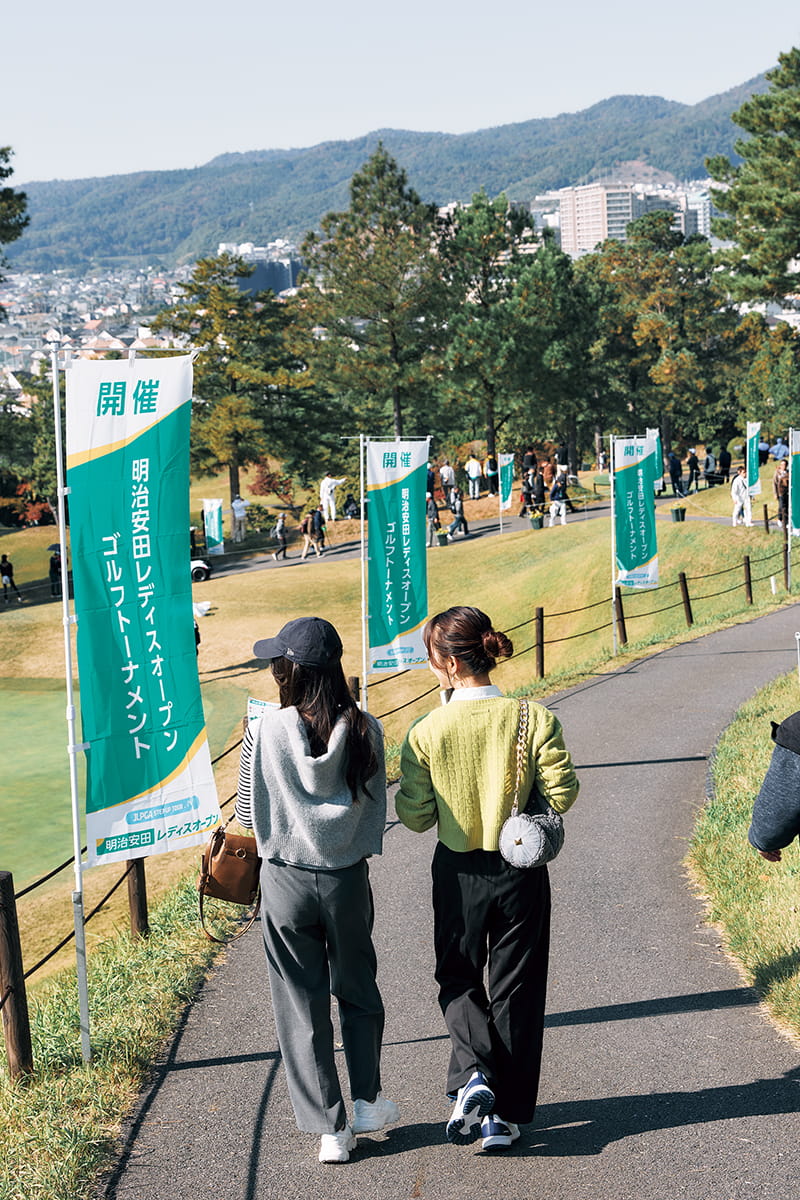 新人選手の育成やレベルアップを目的としているのがステップ・アップ・ツアー。今回ふたりが訪れたのは、2025年11月6日〜8日の日程で大阪の茨木国際ゴルフ倶楽部で行われた大会。JLPGAツアー出場を目指す、未来の〝スター〟のプレイを間近で観られる大会として、年々盛り上がりを見せています。