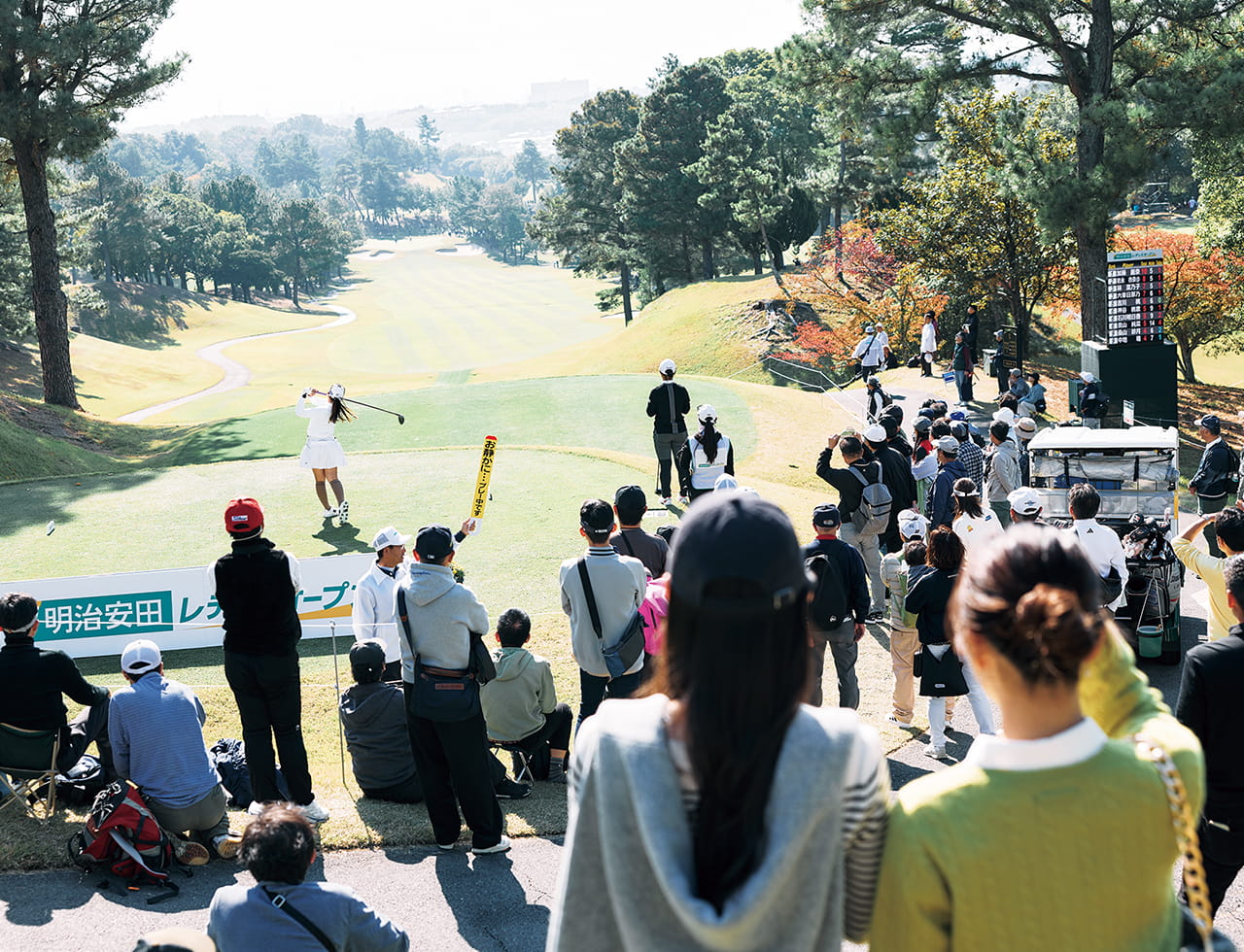 明治安田は「JLPGAツアー」、「ステップ・アップ・ツアー」、「レジェンズツアー」のすべてに特別協賛し、女子プロゴルフを応援しています。ツアー観戦の際は明治安田の大会に出かけよう!