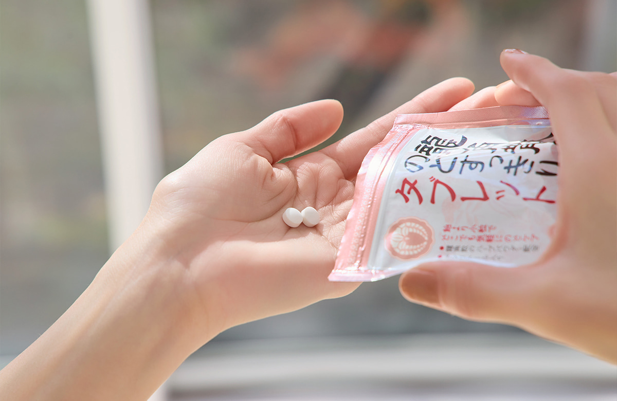 Oggi読者の方は働く女性が多いし、たとえば打ち合わせ前にのどをケアしておきたいっていうとき、タブレットなら食べやすくて仕事のシーンで重宝することが多いんじゃないかな。実は私も最近、子供の風邪をまんまとくらいまして…。のどがガサガサするけどオンラインでの打ち合わせをしなくてはいけなかったのですが、タブレットを食べて臨んだらのどがすっきりして、打ち合わせに集中できてすごく助かったんです。もっと早く知っておけばよかったって思う方、私以外にもきっとたくさんいらっしゃると思います。今後は移動時間に飴、仕事ではタブレット、などシーンにあわせて選びたいですね。