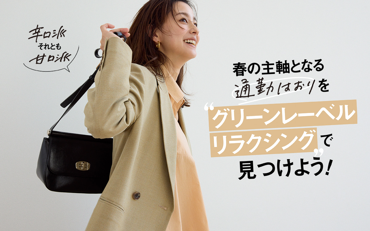 ジャケット×パンツのセットアップで着用するなら、素材感にこだわるとGOOD。素材の程よいラフさが、カチッとした中に抜け感を演出してくれる。ナチュラルなベージュは、今季トレンドのパステルカラーをなじませて、明度をあげて着ると今っぽさがさらにアップ。手洗いができるので夏まで重宝できるのもうれしい!