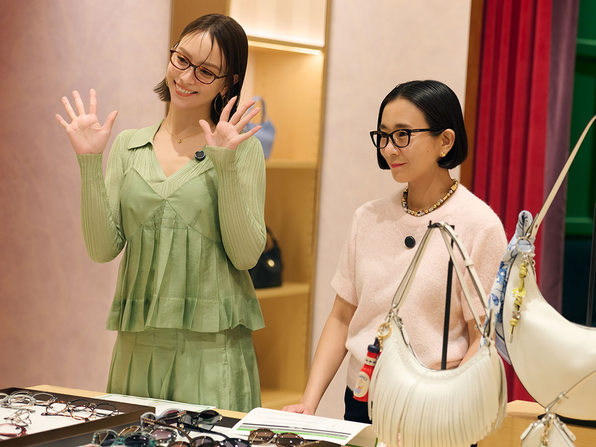 佐藤さんも「自分的に迷うデザインのものこそ、意外に服に合わせやすかったりするのよね」と、眼鏡選びの奥深さを語ります。すかさずカレンちゃんも「そうなんです! 眼鏡に沼ってしまう理由がそこにあると思うんです。客観的におすすめしてくれるお友達と一緒に来るといいかもしれませんね」と、今回も最後まで眼鏡トークが止まらないふたりでした。