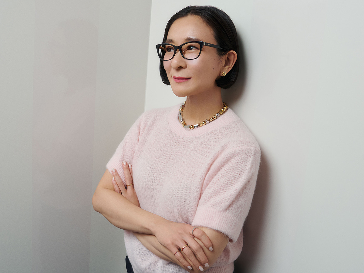 佐藤さんとカレンちゃんがおっしゃったように、メイクを上手に取り入れると知的すぎる印象を中和してエレガントさがUP。ヘアスタイルも顔まわりをゆるく巻いたり、片側だけ耳にかけてゴールドのテンプルを見せるだけで、真面目な人という印象から余裕のある大人の雰囲気に。色ではなく質感で遊ぶのも、大人ならではの楽しみ方だと思います。
