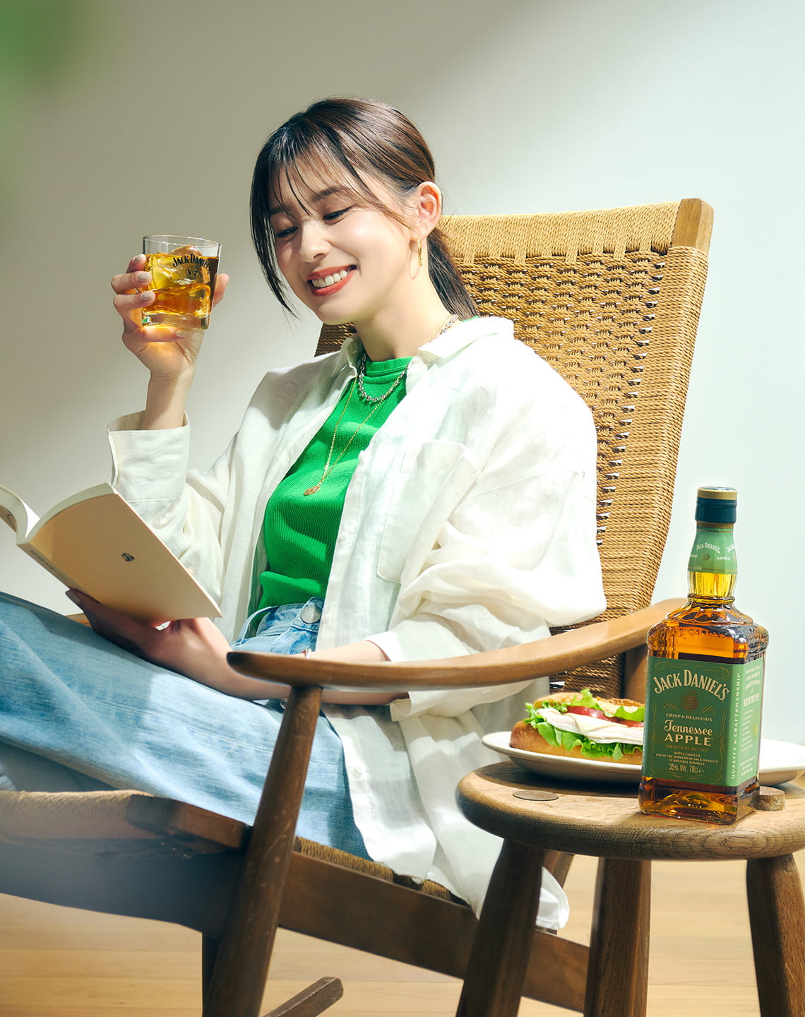 予定のない休日の午後、ベランダや明るいリビングで過ごす自分を労る時間。そんなシーンにこそ、青リンゴの爽やかな香りと、ウイスキーの奥深さが絶妙なバランスの〝ジャックアップル〟が寄り添います。氷を入れてロックで飲むもよし、炭酸水で割ってハイボールにしてもよし。ですが、おすすめはアイスティーと割って飲む、その名も「ジャックアップルティー」。ウイスキーへの入口として最適な〝飲みやすさ〟が、ひとり時間を優しく包み込んでくれます。また、食事とも合うのがこの一杯。野菜たっぷりのバゲットサンドのお供にもぴったりなんです。