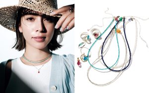 ベーシック服に〝アガット〟のジュエリーを掛け合わせた、スタイリッシュなアイディアを提案するこの連載の第45回。今回は、パワフルなカラーが魅力! ターコイズとルビーをあしらったジュエリーがテーマです。